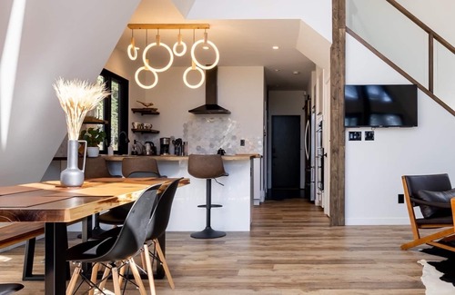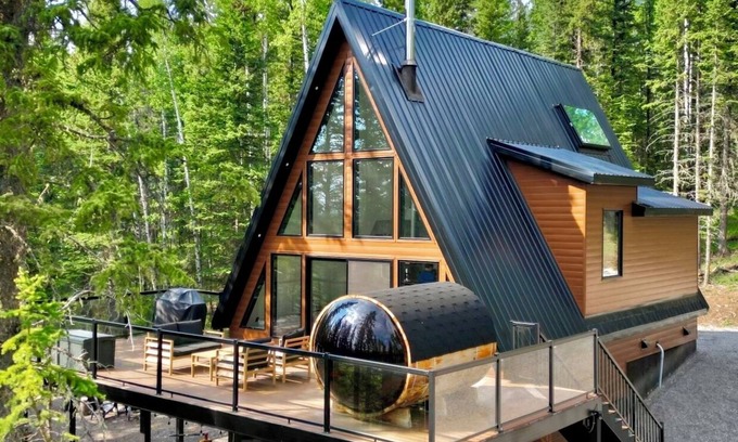 Modern A-frame cabin with a breathtaking view of the Mountains that combines rustic character with modern features. This is a place where your soul and body can relax from a busy urban life. The cedar barrel sauna with a panoramic view offers a unique opportunity to enhance your cabin experience. Experience the night sky and if your lucky the northern lights from the huge skylight window or deck. Please follow us for special offers and promotions @ beaverlodge_aframe