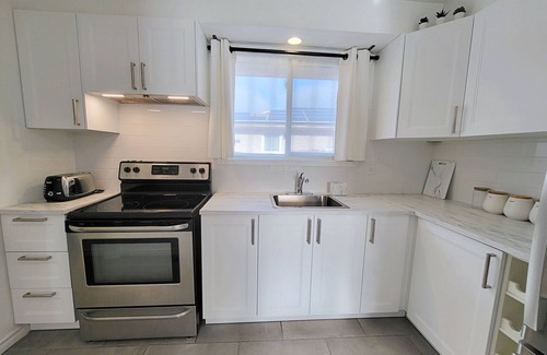 Welcome to your modern sanctuary in a family-friendly neighbourhood. The interior boasts curated artworks, creating a welcoming ambiance. Nearby attractions include Gaslight District, Tapestry Hall, and Hamilton Family Theatre, all 4 min away. Whistle Bear Golf Club, Grand Valley Golf and Country Club, Cambridge Mill, Roseville Estate are within 7-8 min. African Lion Safari is 20 min by car for a memorable family outing. The space features comfortable seating areas both inside and outside, perfect for unwinding after a day of exploration. The layout allows for seamless flow between the living, dining, and kitchen areas, as well as the outdoor sideyard for outdoor dining. Ideal for family gatherings or group getaways. The outdoor area includes both a side yard and a backyard with patio furniture: a conversation set, a dining table for 10, and sun loungers. With five bedrooms, our retreat comfortably accommodates up to 10 guests, ensuring everyone has their own private sanctuary.