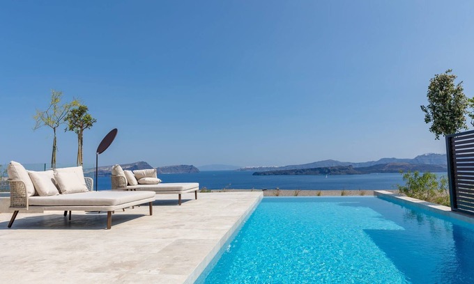 Modern Santorini Villa | Villa Mystic | 3 Bedrooms | Private Heated Pool | is located in Akrotiri. Modern Santorini Villa | Villa Mystic | 3 Bedrooms | Private Heated Pool | provides accommodation, featuring Parking, Private Pool, Hot Tub, among other amenities. This Villa features Parking, Private Pool, Hot Tub, to make your stay a comfortable one.