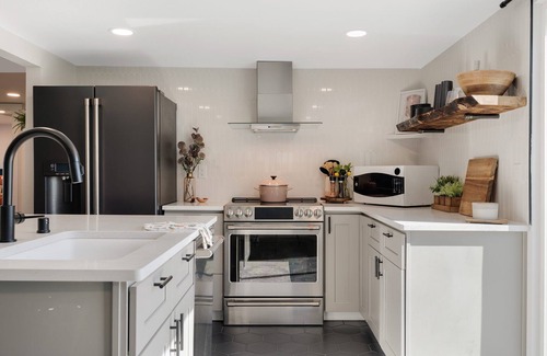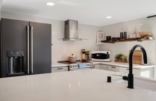 Completely remodeled home! 2 bedrooms, 1 bathroom with a luxurious vibe. High end appliances, furniture and decor. This home is as comfortable as it gets. From a soaker tub, to a large walk in shower, to upscale mattresses and decor! Fully fenced back yard, so your well behaved furry friends are always welcome!