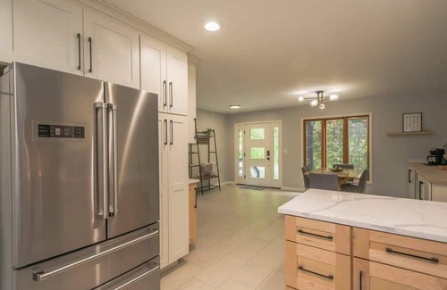 The fully equipped kitchen and dining area provide all the amenities necessary for a comfortable stay.Additionally, there is a cozy living room with a fireplace, perfect for relaxing after a long day of exploring. The property is situated in a serene and peaceful location, offering easy access to nearby hiking trails, fishing spots, and other outdoor activities. Whether you're looking for a romantic getaway or a family vacation, this vacation rental is the ideal destination.