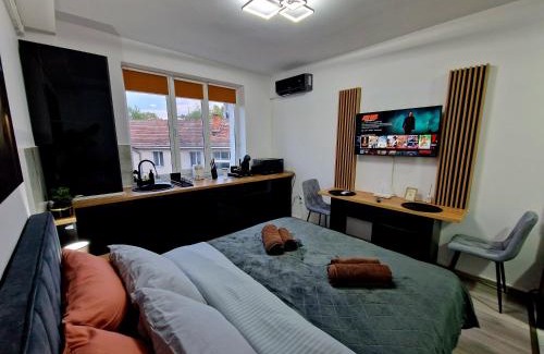 Both free Wifi and parking on-site are available at Modern Studio 2 free of charge. The air-conditioned apartment consists of 1 bedroom, a fully equipped kitchenette, and 1 bathroom. A flat-screen TV is provided. The accommodation is non-smoking. For guests with children, the apartment provides outdoor play equipment. The nearest airport is Bacau International Airport, 33 miles from Modern Studio 2.