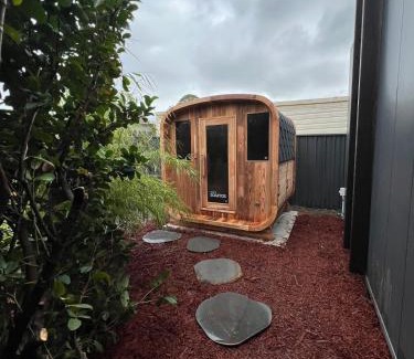 A 17-minute walk from Shellharbour City Stadium in Albion Park, Modern Studio with Outdoor Bath and Cabin Sauna features accommodations with access to a sauna, hot tub, and open-air bath. Both free Wifi and parking on-site are accessible at the apartment free of charge. Outdoor seating is also available at Modern Studio with Outdoor Bath and Cabin Sauna. The air-conditioned apartment consists of 1 bedroom, a living room, a fully equipped kitchen with a dishwasher and a coffee machine, and 1 bathroom with a walk-in shower and a hot tub. Towels and bed linen are available in the apartment. For added privacy, the accommodation has a private entrance and soundproofing. Guests can relax in the garden at the property. Historical Aircraft Restoration Society Museum is 1.8 miles from the accommodation, while Jamberoo Action Park is 4.5 miles from the property. Shellharbour Airport is 1.2 miles away.
