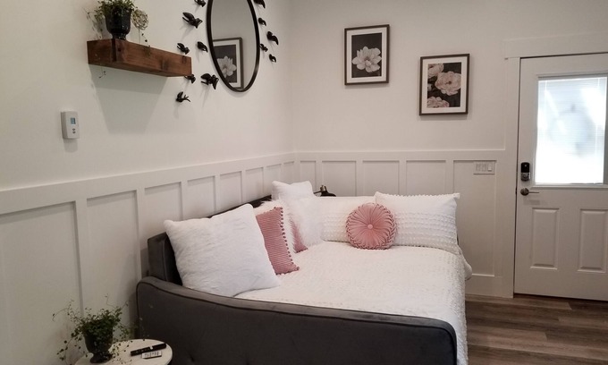 You will have this luxurious studio apartment all to yourself. No stairs. Basic amenities such as a mini fridge, microwave and Keurig coffee maker (with cream, sugar, and Splenda) provided. Attached bathroom with shower. Towels, hair dryer, shampoo, conditioner, and body wash. Washer and dryer in the unit for your personal use (Tide Pods provided). TV and wifi. Full daybed with pullout twin trundle.