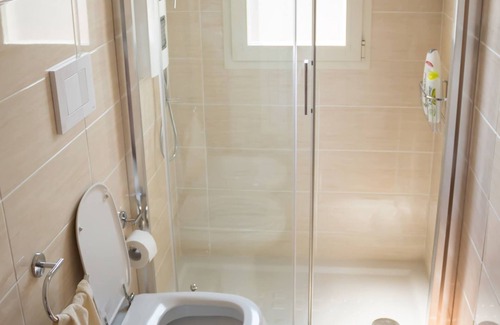 Air-conditioned, equipped with heating, hot water, washing machine, iron and ironing board, hairdryer, bathroom with large shower cabin and vertical hydromassage column. Double bedroom with memory mattress, three single beds always with memory mattresses Balcony and availability of the terrace.