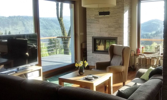 Modern Villa in Zwardon with Sauna is located in Zwardon. Modern Villa in Zwardon with Sauna provides accommodation, featuring Fireplace/Heating, Barbecue/Outdoor Cooking, Child Friendly, among other amenities. This Villa features Fireplace/Heating, Barbecue/Outdoor Cooking, Child Friendly, to make your stay a comfortable one.