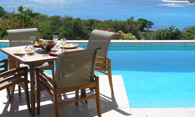 Private, luxurious, oceanfront, private villa in Sea Feather’s Bay with stunning views of the Caribbean and St Martin.