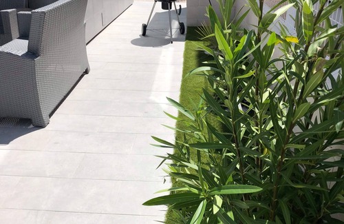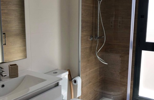 2 bathrooms with sink, shower and wc. Fully equipped kitchen with fridge, hob, extractor, oven and microwave and usual appliances. Private parking for a vehicle. Terrace with garden furniture and sun protection awning. Solarium on the roof.