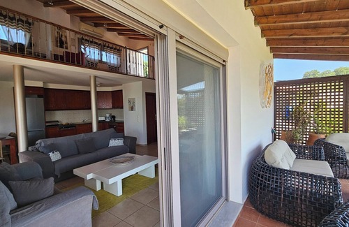 The living room terrace and the sun terrace have shaded pergolas. Enjoy your morning exercise on the terrace and take in the wonderful view. The villa is equipped with a yoga mat. If desired, Mira, the yoga instructor, can be booked and will be happy to come to your villa.
