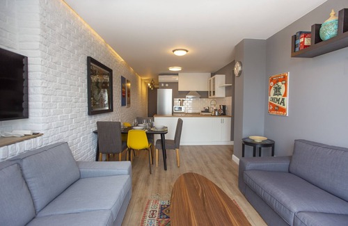 Situated right on the Bosporus, this cozy, modern apartment boasts spectacular views of the city worthy of Sultans. It’s truly breathtaking to enjoy your morning coffee on a comfortable sofa while gazing at iconic monuments and the ferries cruising along. When you’re ready to head out to explore, the touristic epicenter of Taksim Square, posh streets of Nişantaşı district or the recently modernized hip Karaköy neighborhood are all awaiting to entertain you.