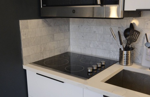 Our studio was recently renovated in and is perfect for 2 people! The unit includes a Casper queen-size bed, dining area for 2, full rainfall shower, kitchenette with luxury drawer dishwasher, small fridge with mini freezer, cooktop and convection microwave. High-end furniture from West Elm, Crate and Barrel, and EQ3 throughout the unit. Free wifi is available. There is a fireplace and smart TV for cozy stays in. Air conditioned unit in the summertime. The patio is a perfect place during the summer to have a cup of coffee in the mornings and take in the mountains and fresh air.