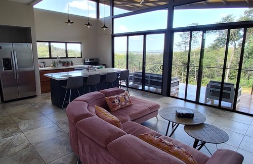Enjoy the panoramic windows and spectacular views of the ocean and mountains from he deck. Watch the birds and listen to the howls of the howling monkeys.