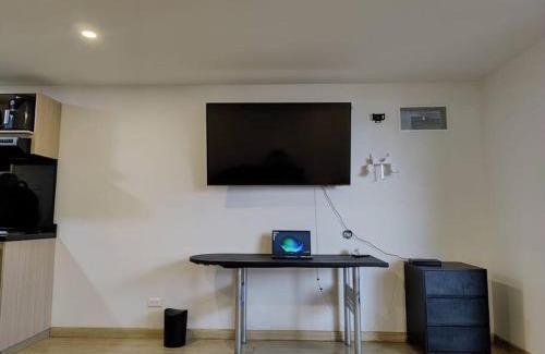 Moderno apartaestudio con balcón offers accommodations in Bogotá, 2.9 miles from Unicentro Shopping Mall and 6.3 miles from El Campin Stadium. This property offers access to a terrace and free private parking. Corferias International Exhibition Center is 8.2 miles away and Bolivar Square is 10 miles from the apartment. With free Wifi, this 1-bedroom apartment features a flat-screen TV and a kitchen with a microwave and fridge. Towels and bed linen are available in the apartment. Luis Angel Arango Library is 10 miles from the apartment, while Quevedo's Jet is 11 miles from the property. The nearest airport is El Dorado International Airport, 7.5 miles from Moderno apartaestudio con balcón.