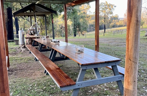 The Mogendoura cottages are three self-catered, top quality, brick cottages set well away from Mogendoura farmhouse with a communal barbeque and children's playground. Each has two bedrooms, kitchen lounge/dining room, bathroom, and laundry/toilet and can comfortably accommodate six. Individually, each cottage is ideal for families or a group of friends. Otherwise, as they are within proximity to each other, this is perfect for family groups or larger groups of friends to get together whilst also providing private accommodation. For additional ambiance each cottage has a slow combustion fire for those chilly winter evenings.