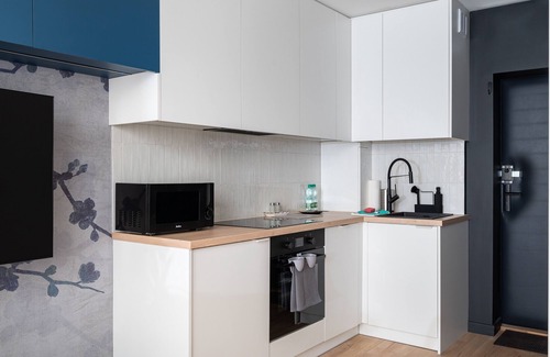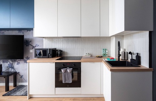 Mokotów Bełska Dream Studio features a stylishly furnished living room with a sofa bed, comfortable double bed, and kitchenette, a bathroom, and a balcony, where guests can relax and enjoy their morning coffee or evening glass of wine. Guests have access to a range of practical amenities, including free WiFi, cable TV, a washing machine, an iron, a hairdryer, a fridge with a freezer, a dishwasher, an oven, a microwave, a toaster, and kitchen accessories. The apartment has air conditioning, which provides extraordinary comfort, especially during hot days.