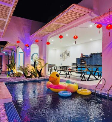Providing a garden, MON House 2 features accommodations in Ấp Sung Xuân. This property offers access to a terrace, a pool table, free private parking, and free Wifi. The vacation home provides a pool with scenic views and a shared kitchen. The air-conditioned vacation home consists of 1 bedroom, a fully equipped kitchen, and 4 bathrooms. A flat-screen TV is provided. Guests can make the most of the warm weather with the property's barbecue facilities. Sea Link Golf Course is 1.6 miles from the vacation home, while Binh Thuan Bus Station is 2.7 miles away. Lien Khuong Airport is 84 miles from the property.
