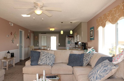 Visit our recently renovated top floor end unit, Monkey Sea, Monkey Dune. Enjoy relaxing views of the Atlantic Ocean, the Intracoastal Waterway and the Island from both of our spacious decks. The redesigned floor plan provides each bedroom with a private bath. We also added brand new beds, appliances, bathrooms, fresh paint, and updated furniture.