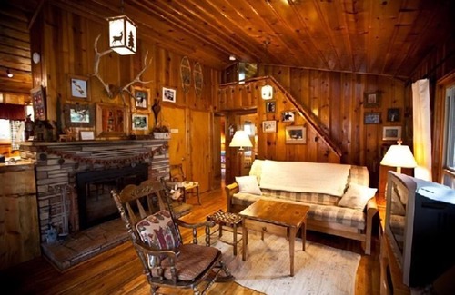 Very Charming, Warm & Rustic A True Cabin Experience! (Sleeps 8 ) 2 Bdrm w/ Loft, 1 queen, 1 double, 2 twins, & 1 Hide-a-bed. 1 Bath. Full Kitchen w/ microwave, TV/VCR/Sat/DVD, Fireplace, Log Sided, Knotty Pine & Wood Floors. Secluded in the Trees. Very Rustic. Very Clean. A Real Cabin Experience. NOTE: 4 Wheel Drive Required in Winter. *** Please Remember, all of our cabins are Non-Smoking!