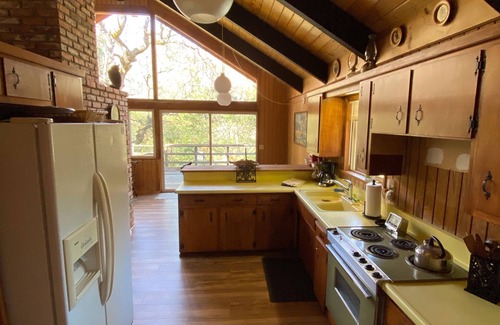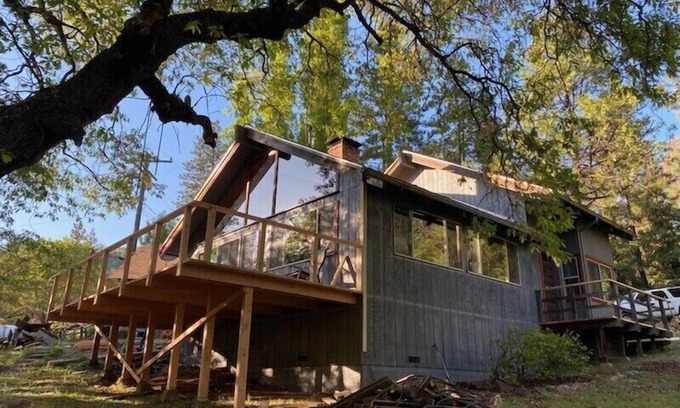 This just newly renovated Mountain Cabin (June 2020) features1 bedroom downstairs, large sleeping loft/play room upstairs, Living room with gorgeous fireplace and nice area for the family. Windows everywhere with views in the winter of the surrounding mountains and gorgeous HUGE oaks leafed out in the summer. Has 2 sleeper couches in the living room and windows all around. Upstairs loft that sleeps 4 easily with tons of room to hang out and for the kids to watch their own TV. Sits on a level lot with views out of the vaulted ceiling windows. Brand new deck with furniture, and area under the oak trees with a picnic table and benches. A short 40 minute drive to The Trail of 100 Giants and along the way you can visit the historic Camp Nelson, Ponderosa Lodge, Dome Rock and Peppermint recreation area. The Tule river and redwoods are minutes away. A relaxing getaway with all the comforts of home. Very usable outside space, level with nice natural grass yard. Wildlife including deer, squirrels, rabbits etc.