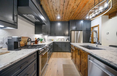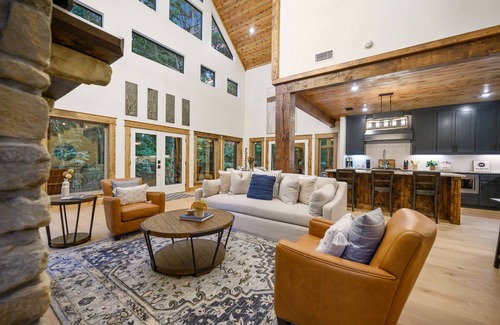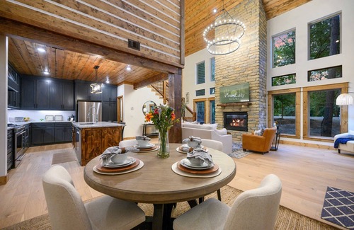 With over 1,600 square feet of thoughtfully designed interior space, Moonlight Vista blends rustic charm with modern luxury. Vaulted ceilings, exposed wood beams, and oversized windows create a seamless connection to the surrounding trees and water.