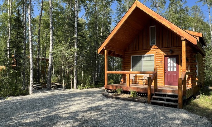 Peaceful family cabin minutes from Main St. Wasilla. Perfect place to base your Alaskan adventure. True cabin style living with two queen beds in the loft and the most supportive pullout sofa bed you've ever slept on sofa bed on the main floor. Close to Wasilla Airport, Menard Sports Center and Parks Hwy, perfect for all the tournaments and shows at the Menard. Great place for couples, solo adventurers, business travelers, and families. We also have 4 other adjacent cabins on other listings for group stays. Shared firepits are available during the summer on a first come basis, firewood is not provided.