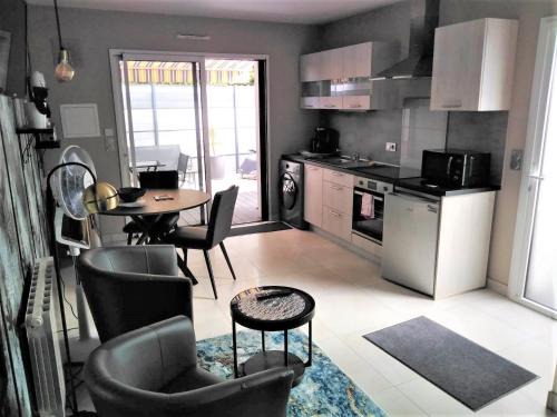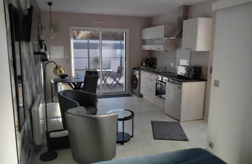 MOR-HA-MARCH Studio offers accommodations in Sarzeau, 1.4 miles from Roaliguen Beach and 15 miles from Vannes Marina. This property offers access to a patio, free private parking, and free Wifi. Le Chorus Exhibition Center is 16 miles from the apartment. Featuring a terrace with garden views, this apartment also includes a flat-screen TV, a well-equipped kitchen with an oven, a microwave, and a toaster, as well as 1 bathroom with a shower and a hair dryer. The property has an outdoor dining area. Guests at the apartment will be able to enjoy activities in and around Sarzeau, like cycling and walking tours. Vannes Train Station is 15 miles from MOR-HA-MARCH Studio, while Museum Of Fine Arts, Vannes La Cohue is 15 miles from the property. Montoir Airport is 53 miles away.
