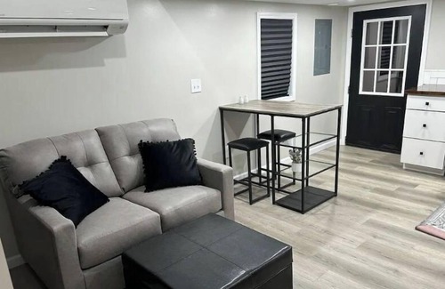 This neat tiny house is perfect for a couple looking to get away for some relaxing. Golf and lake are right here to enjoy. There is a loft for kids if you want to bring them along.