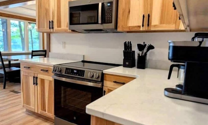 Wake up to sparkling lake views and the peaceful sounds of nature at Moss Lake Lookout, a beautifully renovated, single-level 4BR/2BA home on the Lac du Flambeau chain. Designed for both relaxation and adventure, this spacious retreat features two king bedrooms, two queen bedrooms (one with an extra single bed), and plenty of room for family and friends.