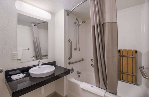 Motel 6 Fargo, ND - West Acres - North Fargo offers 96 accommodations, which are accessible via exterior corridors. Flat-screen televisions come with cable channels. Bathrooms include bathtubs or showers.
