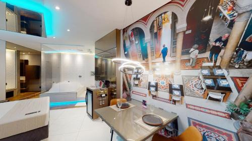Food & DrinkChocolate/Cookies, Bottle of water, MinibarBathroomConditioner, Spa tub, Free toiletries, Bathtub, Toilet paper, Towels, Additional bathroom, Toothbrush, Private bathroom, Hairdryer, Shampoo, Shower, Toilet, Body soap, Shower cap, Bathrobe, Slippers, Towels/Sheets (extra fee)Media & TechnologyPay-per-view channels, Flat-screen TV, Cable channels, Telephone, Streaming service (like Netflix), Radio, Mobile hotspot device, Satellite channels, TVGeneralAir conditioning, Trash cans, Tile/Marble floor, Private entrance, Fire extinguisherServicesWake-up service/Alarm clock, Wake-up serviceKitchenWine glasses, Dining table, Cleaning products, Refrigerator, Coffee machineLiving AreaDining area, DeskBedroomLinensRoom AmenitiesAdapter, Non-feather pillow, Socket near the bedPhysical distancingSingle-room AC for guest accommodation |