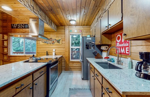 Whether visiting in winter for a large family ski-cation or escaping to the woods for a little midsummer rest and relaxation, you'll love this three-bedroom charmer in Government Camp bordering the Mt. Hood National Forest.