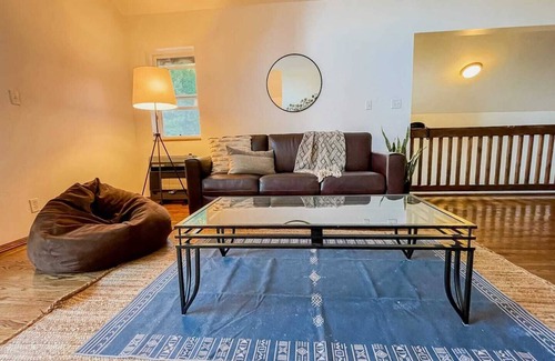 The Lowman Lodge is cozy second story 1 bedroom 1 bath mountain cabin. Bedroom has a queen bed, walk in closet and the bathroom is located as an on-suite to the bedroom. The Living room is spacious and has a 3-seat queen sleeper couch with memory foam mattress. Off the living room there is a small deck with BBQ. There is also a small dining area off the living room with space for 4 people. The living room has a smart TV with Netflix and Amazon prime available for guests to log in to with their own information. The living room and kitchen share an open concept with a breakfast bar solid wood counter and 3 high chair/stool seat. There is also a welcoming entry way bottom of the stairs, and under the stairs is a cozy kids zone hang out book reading/play space. There is an air mattress and pump for expanded sleeping options.