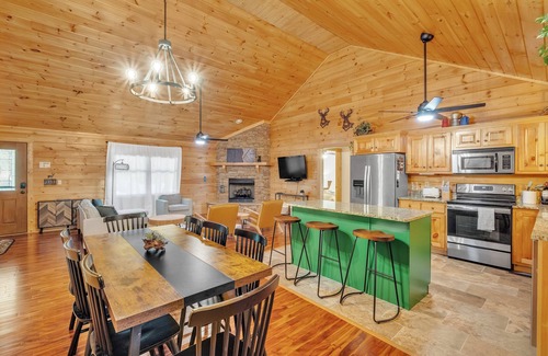 Mountain Getaway for 12- Game Room, Pools, Fireplace, Hot Tub, Firepit, King Bed is located in Eagle Mountain. Mountain Getaway for 12- Game Room, Pools, Fireplace, Hot Tub, Firepit, King Bed provides accommodation, featuring Child Friendly, Kitchen, Sports/Activities, among other amenities. This Cabin features Child Friendly, Kitchen, Sports/Activities, to make your stay a comfortable one.