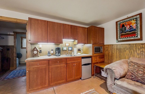 The adjacent and very charming bunkhouse is equipped with a washer/dryer, coffee maker, minifridge, and a microwave.