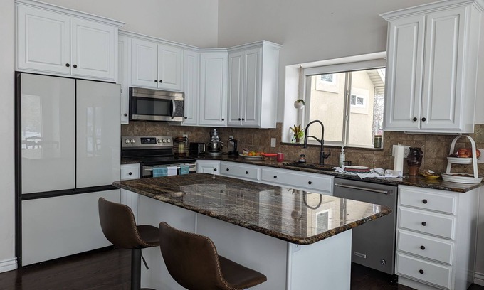 Your oasis near everything. A gas fireplace, 2.5 bathrooms, 3 bedrooms. Next to a trail and a park. Near hospitals, businesses, malls, and restaurants. I love watching the sunset and sunrise from the living room.