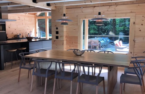 Peaceful mountain house in the Catskills between Woodstock and Hunter on a 12 acre cores. The house is warm and comfortable to accommodate 10 people. 5 bedrooms, 5 and 1/2 bathrooms, a private heated pool ( closed from Columbus Day until Memorial Day), a private tennis court, an 1,000 sqf deck with a 10 people hot tub, a BBQ grill and wood oven. Additionally there is a 700 sqf separate playhouse that has a ping pong table, a pool table and a foosball table as well as a living room. In the main house, there are two living rooms, one with a fire place and another one with a large TV with an apple TV/Netflix. There is a Sonos system with 4 sections. There is also a steam bath for 8/10 people. There is wireless high speed internet all over the property. We can organize for you private tennis lessons (in our court), and guided tour for hiking and visiting the beautiful natural falls. We also have two fire pits in great locations within our property. This house is the perfect getaway for those who want to disconnect the mind from the stress of the day to day life and find a relax environment and sportive life.