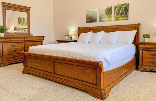 A plush king-sized bed with high-quality linens to ensure restful nights.