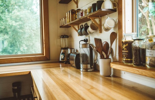 The fully-equipped kitchen is a hardwood timber kitchen with an oven, induction cooktop, a microwave, blender, Chemex pour-over coffee maker, coffee plunger, coffee grinder and dishwasher.