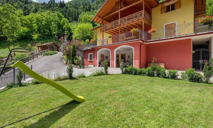 Nestled in the peaceful village of Caldes, this charming apartment blends alpine comfort with modern warmth. Situated on the second floor, it features a welcoming interior with a wood-burning stove and access to a shared sauna, Turkish bath, and pool—ideal for relaxation after a day outdoors. The shared garden and courtyard are perfect for unwinding under the Dolomite sky, while little ones can enjoy the play areas and kid-friendly amenities. The space is pet-friendly, offering plenty of nearby paths and nature trails for you and your furry companions to explore together.