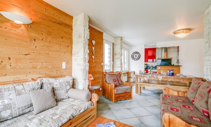 Mountain type apartment 6-8 people at the foot of the slopes is located in Tignes le Lac. Mountain type apartment 6-8 people at the foot of the slopes provides accommodation, featuring Fireplace/Heating, Child Friendly, Internet, among other amenities. This Apartment features Fireplace/Heating, Child Friendly, Internet, to make your stay a comfortable one.