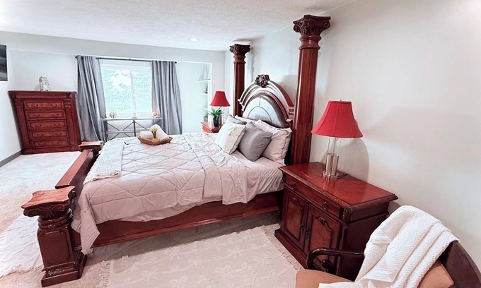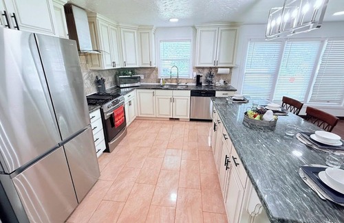 Discover the beauty of North Salt Lake from this 3-bedroom house. With a king bed, queen bed, twin bed, and full bed, guests will find comfort and relaxation in this charming retreat. Enjoy the soothing ambiance of the cozy bedrooms and the awesome amenities like a hairdryer, heating, AC, and iron. Experience the magic of North Salt Lake at our house.