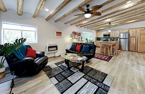 Mountain-View Adobe on Apple Orchard | Walk to Dining & Waterfall Trail is located in Arroyo Seco. Mountain-View Adobe on Apple Orchard | Walk to Dining & Waterfall Trail provides accommodation, featuring TV, Bedding/Linens, Internet, among other amenities. This Cottage features TV, Bedding/Linens, Internet, to make your stay a comfortable one.