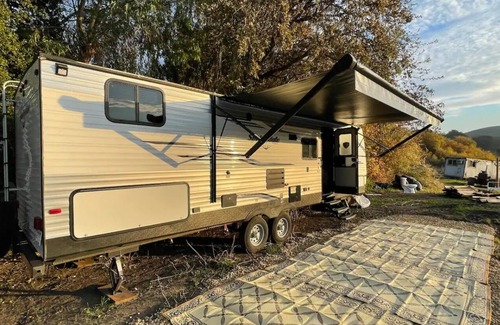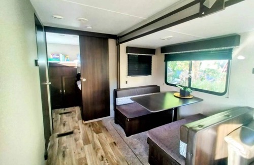 Welcome to our modern camping getaway with full bathroom & full kitchen.