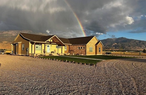 Relax with the whole family and enjoy the beautiful mountain scenery. Whether on a visit to a National Park, a relaxing local natural hot spring, a stroll through the mountains on an ATV or mountain bike, or paragliding, we are conveniently located for any of these adventures. No blackout curtains needed in this comfortable 3 acre property, as the streetlights are left behind and nothing, but the stars await your nights. This is the perfect place for a family reunion. Pets welcome. This is a walk out basement property, of a two level home that is modern and fully furnished. With 1,700 sq ft, 3 bedrooms, two full baths, a laundry room and a spacios family room, relaxation comes easy. Enjoy the use of a new BBQ'r while you take in the amazing views and cool night air. There is an in-ground trampoline for the kidos. We are currently in the process of landscaping which will be completed summer 2025.