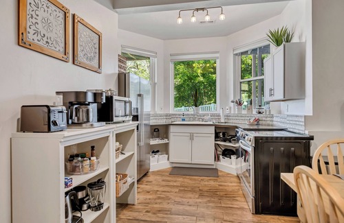 Gorgeous basement apartment with private entrance that leads into beautiful living room with large sectional couch and reading chair. From there, make your way into the fully equipped kitchen with a large picture window overlooking the wooded view.