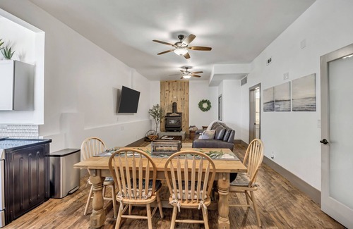 Adjacent is the comfy family room with 60 inch TV and charming, decorative wood burning stove--the perfect place for family gathering and relaxing. Some games, puzzles, and books provided.