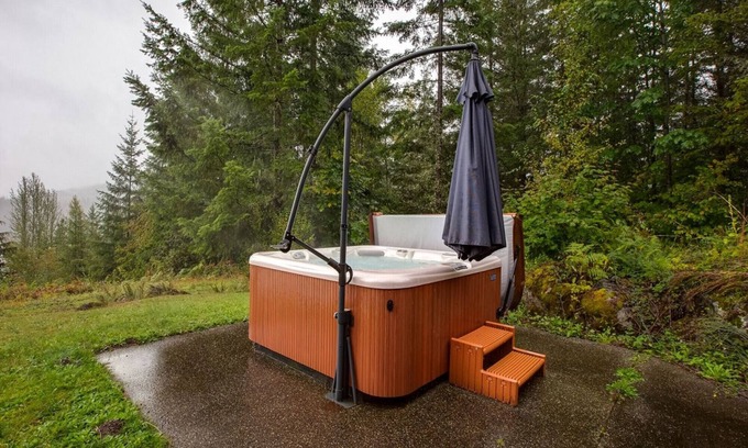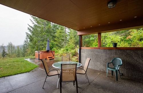 Formerly the first floor of the renown Inn at Mt. Baker, this breathtaking 3-bedroom, 3-bath en-suite features some of the most magnificent views of Mt. Baker and the Nooksack River Valley to be found anywhere! Perched high above the Mt. Baker Highway, you will be delighted by this 40 acre estate surrounded by forest land, so you can confidently let Fido run free, and not have to be concerned about neighboring road traffic. All of the main rooms in this custom architect designed en-suite feature stunning mountain views. Entering through the main side door entrance, you’ll discover a mudroom for stowing your winter and summer gear. Passing through into the hallway reveals a combination living room, dinette, and kitchenette area tastefully designed with Berber carpeting and marble counter tops. Accompaniments include a fridge/freezer, a separate ice maker, a toaster oven, a microwave oven, an electric cook top, a coffeemaker, and a wet bar, plus a comfy sofa, a large flat screen monitor, and an exterior door that leads to a partially enclosed patio with a private outdoor HOT TUB! Back inside, you’ll discover a mechanical room with a full sized washer/dryer, one bedroom with 2-twin sized beds and an adjoining full bath, a second bedroom with 1-queen sized bed and an adjoining full bath, and a third bedroom with 1-king sized bed and an adjoining full bath. All three bedrooms feature thoughtfully designed private outside entrances, so that you can take your favorite beverage out onto the patio without disturbing other family members. If you’re seeking the ultimate peace and tranquility retreat…look no further…you’re sure to find it here. Who knows; perhaps you’ll be inspired by the winter Alpenglow, or a spring rainbow to write a bestselling novel! This pet-friendly and monitored family vacation property will sleep up to 6-persons (ENFORCED Maximum Occupancy!).