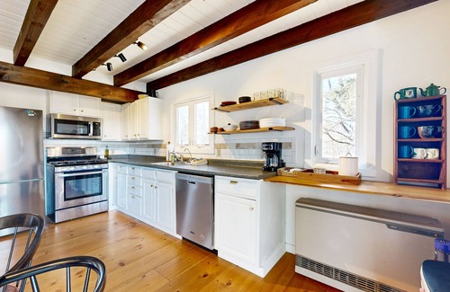 Upon entering this mountain-view charmer, you will discover an open floor plan with warm, rich colors that invite you in. Spread out in the colorful living room featuring a gorgeous stone wood-burning stove, beamed ceilings, comfortable furniture, and a smart TV with streaming services to keep you entertained. The living room also has a slider out to the deck, bringing endless natural light into the living area. The kitchen has been appointed with all the essentials to prepare culinary masterpieces. There is a full bathroom and a laundry area with a washer/dryer on the main level as well. Additional perks include a gas grill.