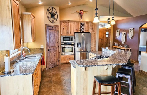 A multifamily house that sleeps 13 and has fun for everyone!!! Walking in the house you will find over 4200 square feet, 6 bedrooms and 3 baths with full man cave basement, workout room, ping pong table, poker table and tv. When you venture out the backdoor, you will find a 50X70 regulation sport court that also boasts a pickleball court. We also have room for ATV's to park for great day rides.