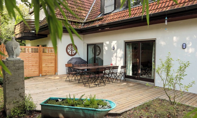 Best-rates for the Am Waldfriedhof apartment starts from $659 per night with includes Balcony/Terrace, Security/Safety, Guest Services, Barbecue/Outdoor Cooking, Internet, Laundry, Parking, Sports/Activities, Wellness Facilities, Fireplace/Heating, Child Friendly, TV, Bedding/Linens, Entertainment, Kitchen With all other amenities. Float Homes offers a wide range of floating homes, houseboats, and water chalets, ensuring each traveler finds their ideal water escape, whether planning a water getaway, a family vacation, or a pet-friendly retreat with the whole group.